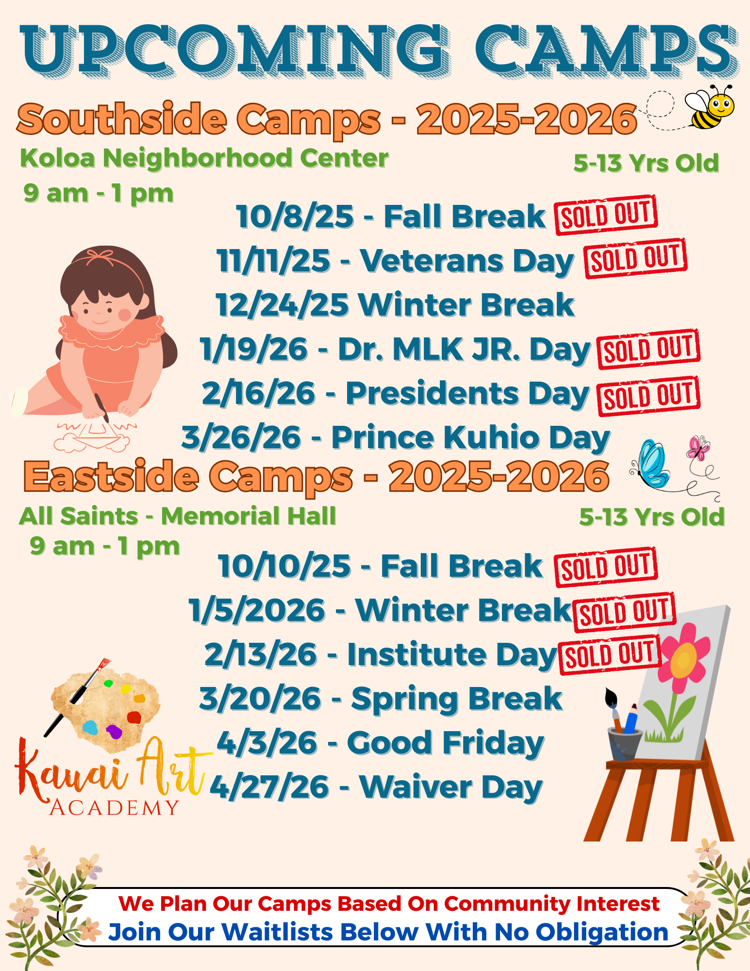 For Any Additional Questions Please Contact Us: Info@KauaiArtAcademy.com or Text/Call: 8083466628